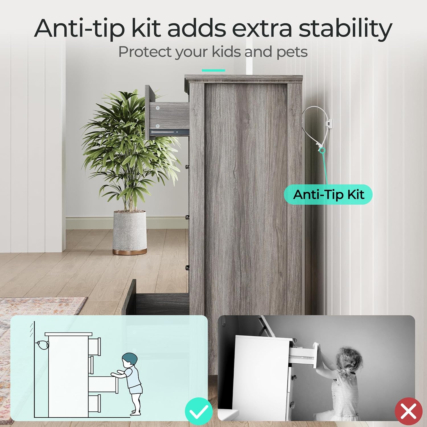 - Safety First: Equipped with a wall anchor kit to prevent tip-over incidents, this dresser for closet prioritizes safety. Smooth metal runners with safety stops ensure drawers stay securely in place. Assembly instructions and hardware are included for easy setup.